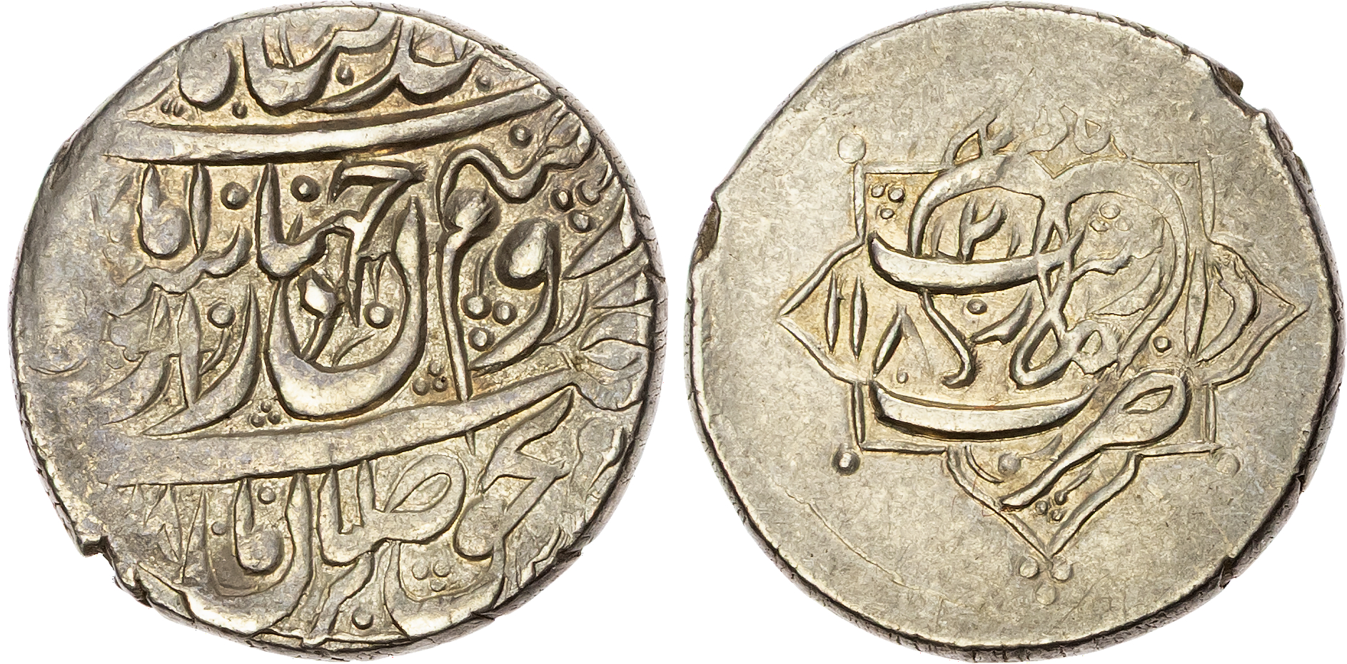 Zand, Karim Khan (AH 1166-1193 / 1753-1779 AD), silver Double Abbasi, AH 1182, Rasht, 9.25g (Album 2796; KM 523). Extremely Fine.