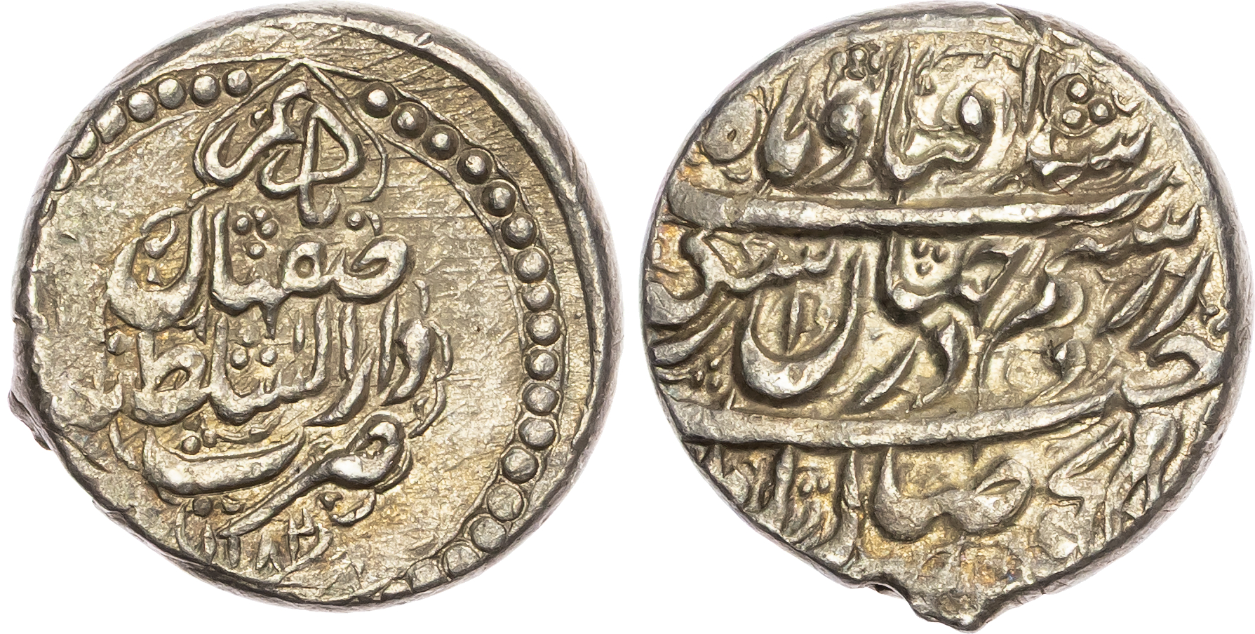 Zand, Karim Khan (AH 1166-1193 / 1753-1779 AD), silver 8 Shahi, AH 1182 / 1768 AD, Isfahan, 9.23g (ICV 3774). Good Very Fine, shroff.