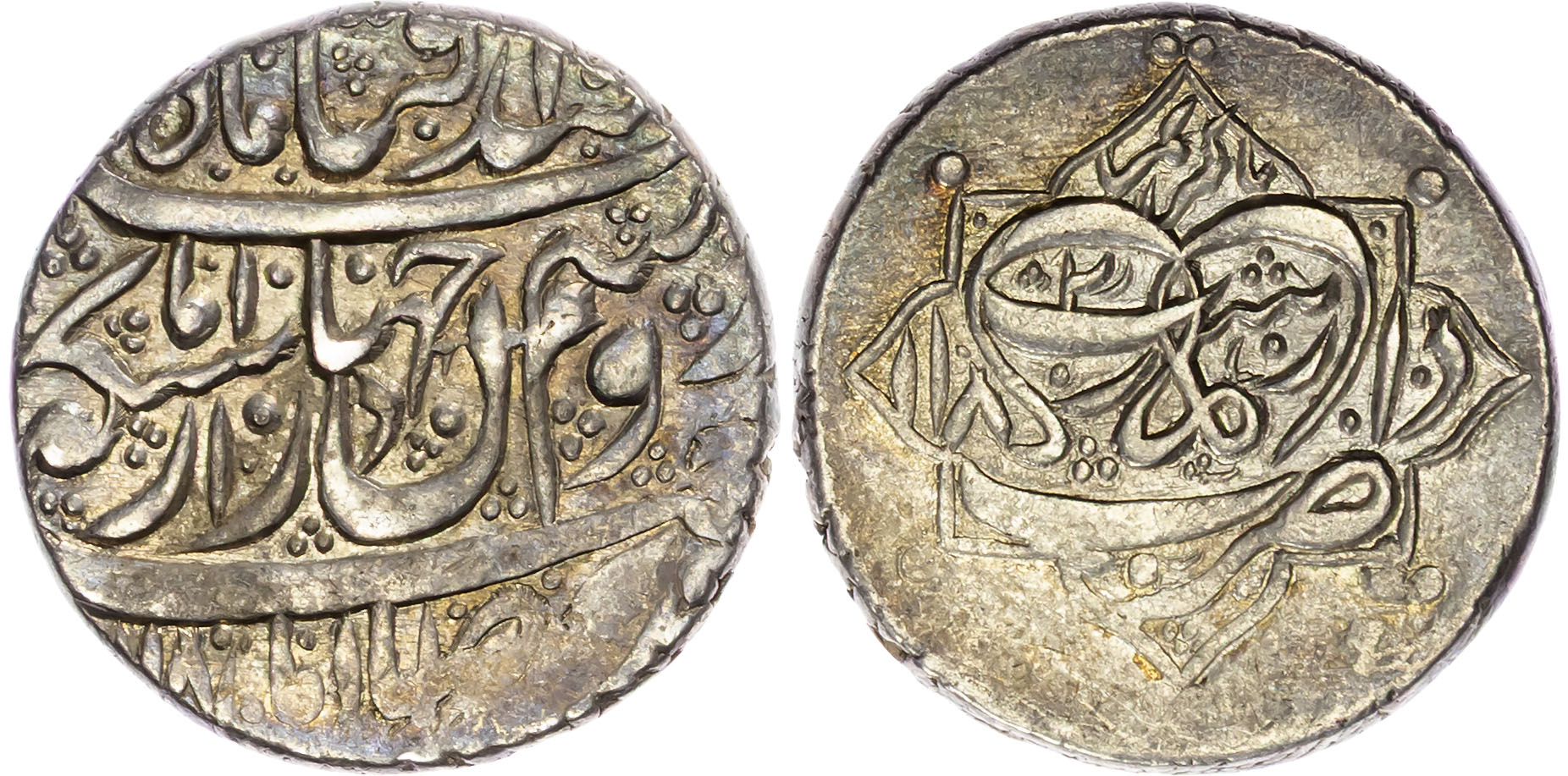 Zand, Karim Khan (AH 1166-1193 / 1753-1779 AD), silver Double Abbasi, AH 1182 / 1768 AD, Rasht, 9.10g (A. 2796). Extremely Fine, some peripheral flatness.