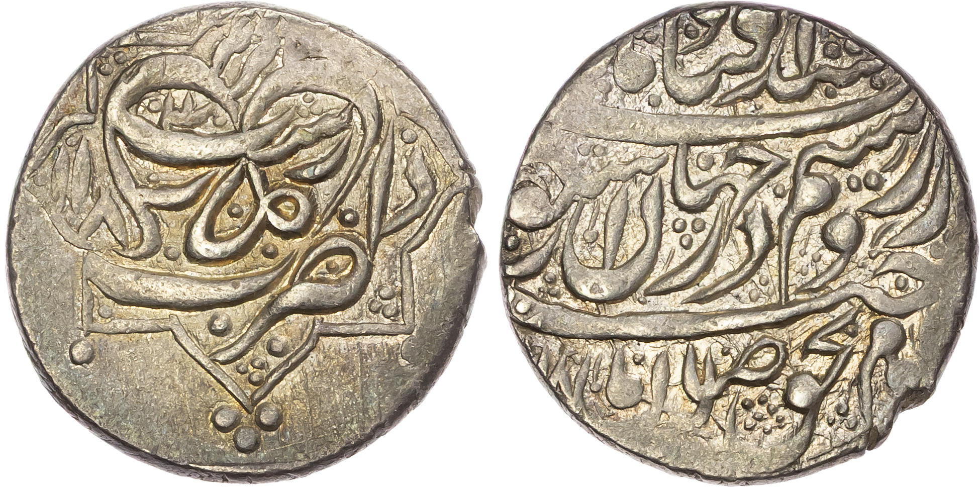 Zand, Karim Khan (AH 1166-1193 / 1753-1779 AD), silver Double Abbasi, AH 1183 / 1769 AD, Rasht, 9.18g (KM 523.7). Extremely Fine.